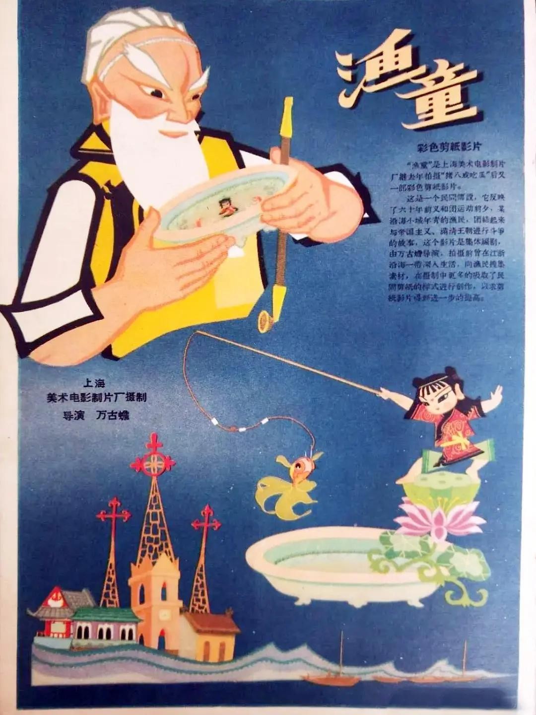 记得小时候还是在黑白电视机里看的这部动画片。《渔童》是根据同名民间传说改编,由上海美术电影制片厂于1959年拍摄的剪纸动画片。由万古蟾担任导演。生动地再现了鸦片战争后,渔民因侵略者禁渔政策所受的苦难。