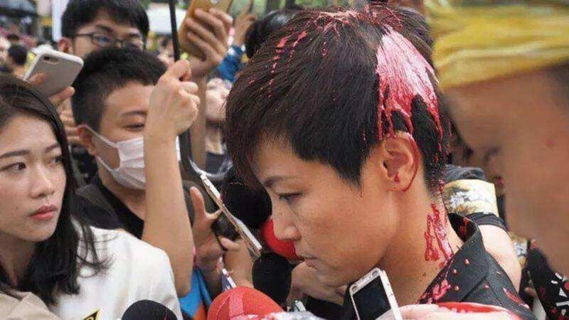 这次,有人给她泼了一头红漆。