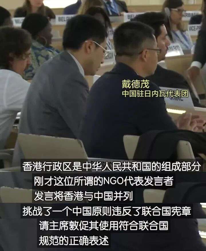 中国驻日内瓦联合国代表团外交官戴德茂两次打断她的发言,敦促她尊重一个中国原则和“一国两制”制度。