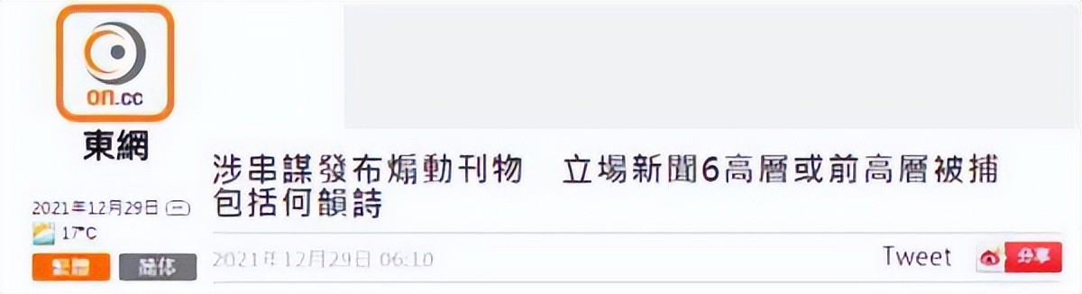 2021年12月底,何韵诗因“涉嫌串谋发布反动刊物”被捕。