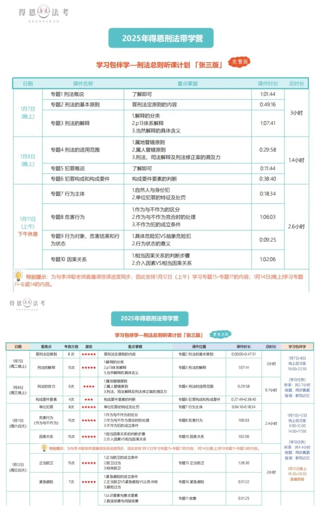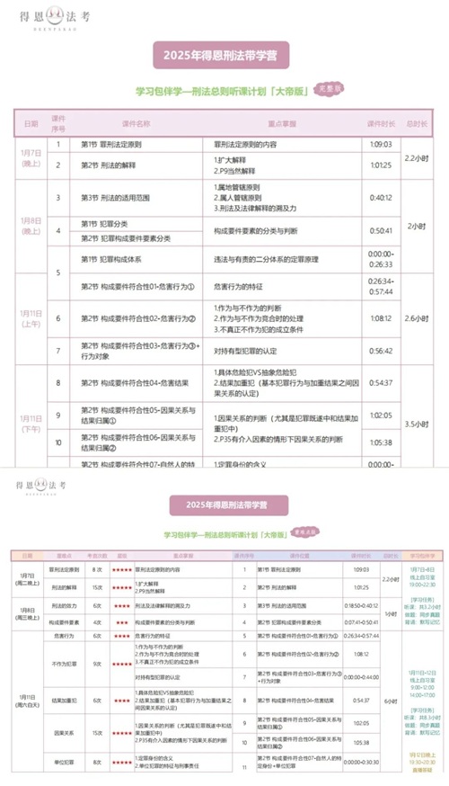 在自习室里,大家听不同老师的课,用不同的资料,安安静静地自学,学习氛围感超赞。与此同时,为了更好的帮助同学们,我们还准备了柏神版、张三版、大帝版三个版本的学习任务,对应刑法总则的听课计划又拆分了:完整版本+重难点版本,听课时长精细到秒。