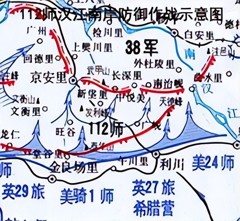 按照志愿军休整部署是:以志愿军第38军第112师和第50军控制汉江南岸桥头阵地,以第42军第125师位于南汉江以东,警戒当面之敌,以人民军第1军团2个师位于汉江以南,负责警戒海防,其余各部队分别集结于汉城、高阳、东豆川、磨石隅里、加平及金化地区休整。这样,38军112师的任务是背靠汉江,抗击敌人的进攻。