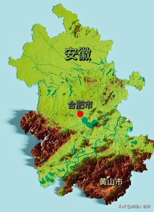 安徽省地形图。平原、台地(岗地)、丘陵、山地等类型齐全