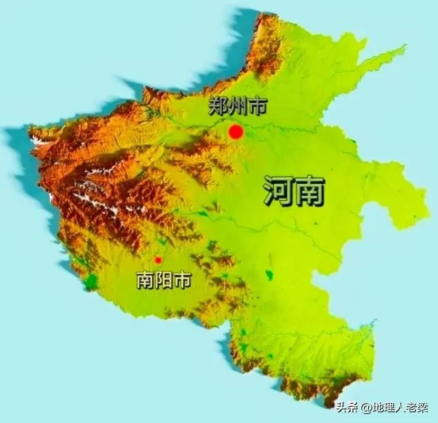 河南省地形图。河南省地势呈望北向南、承东启西之势,地势西高东低,由平原、盆地、山地、丘陵、水面构成