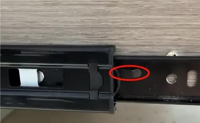 步骤1:把抽屉拉出来,拉到最大的范围就可以了,然后你就去观察一下两侧滑轨,然后找到卡扣,可以去参考一下图片。