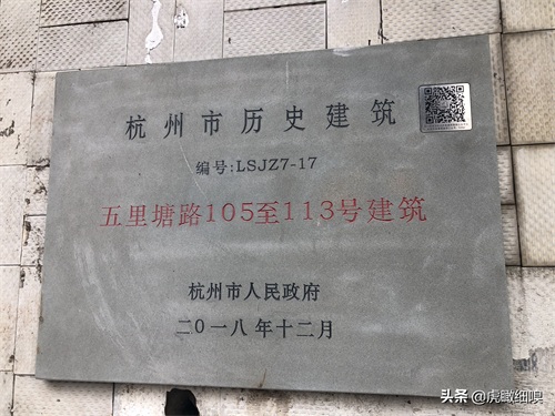 五里塘路105-113号建筑为砖混结构,看起来历史并不长。看起来并不显眼,不知有什么特别之处。但该建筑2018年被杭州市人民政府列为杭州市历史建筑。