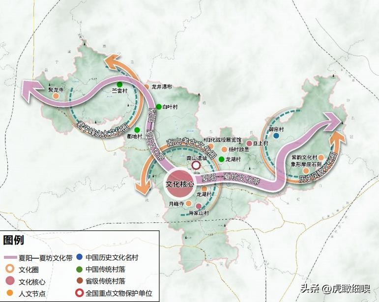 文化发展圈:即君子峰山水文化圈、南山考古文化圈、历史风貌文化圈。