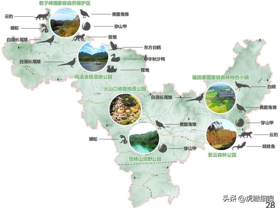 多核:多个国家级自然保护区、省级自然公园。结合生态保护红线斑块面积和自然保护地等级筛选主要生态源地和重要生态节点,重点保护生态源地,加强生物多样性和水源涵养生态功能建设,并提升景观与游憩设施建设。重点保护福建君子峰国家级自然保护区、三明鸣溪省级湿地自然公园、三明雪峰山省级森林自然公园、三明火山口省级地质自然公园等。