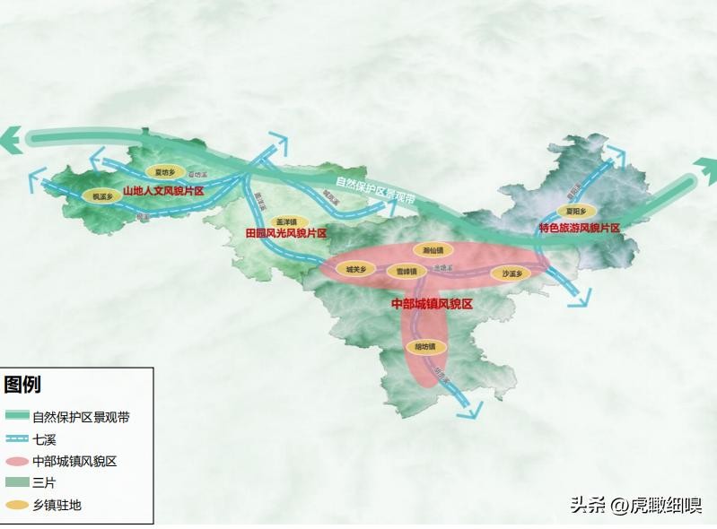 三片:即山地人文风貌片区、田园风光风貌片区、特色旅游风貌片。