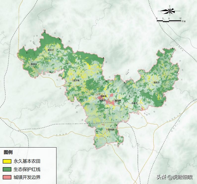 规划期内划定永久基本农田保护面积96.93平方公里(14.54万亩);生态保护红线面积590.96平方公里(88.64万亩);城镇开发边界围合面积16.55平方公里(2.48万亩)。