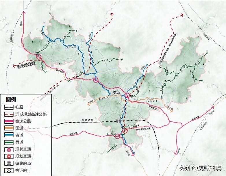 高标准建设客货运枢纽体系:构建公铁联运体系,依托铁路优化布局客货运站点,提升客货运协调与周转能力。完善物流建设,依托交通枢纽、高速出入口等布局物流设施,构建“货运无缝隙衔接”运输体系,实现物流高效集散。聚焦农村客运,提升公共客运交通的便捷度,助力城乡协调发展。