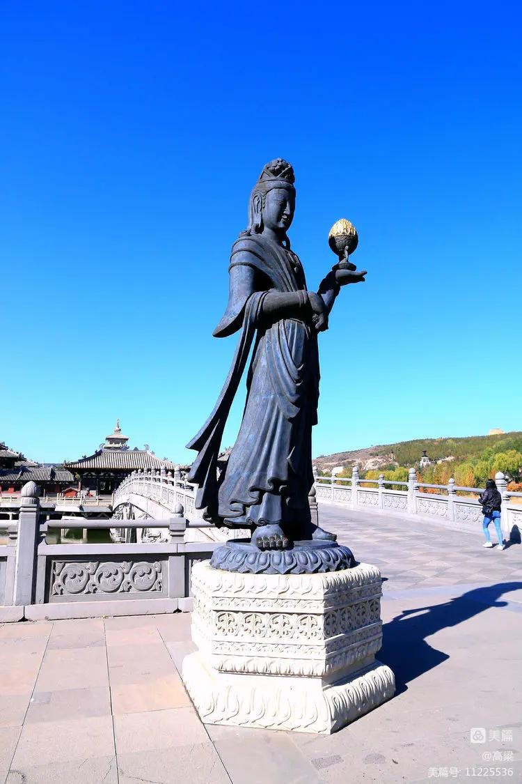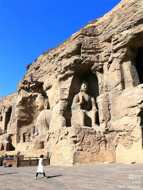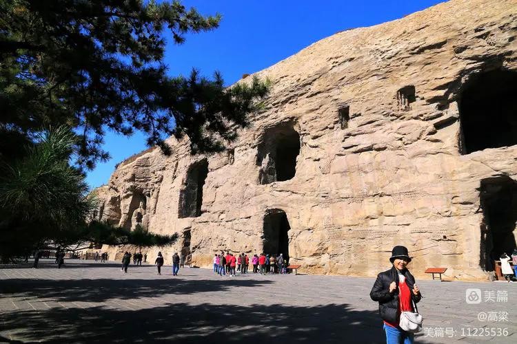 景区入口广场上,昙曜塑像,筚路蓝缕,风尘仆仆,袈裟飘逸,写意手法潇洒大器,佛门大德高古清逸。公元460年,北魏文成帝崇尚佛教,为复兴佛法,命昙曜高僧主持开凿了规模宏大的云冈石窟,昙曜成为云冈石窟创始人,也是北魏著名的佛学大师和北魏佛教昌盛的奠基人