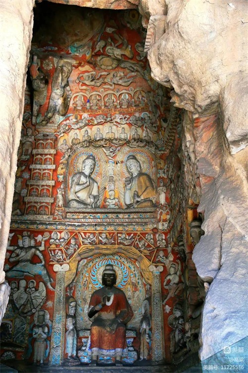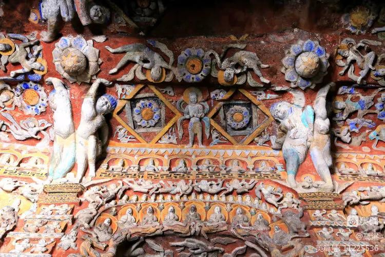 第九~十三窟俗称“五华洞”,因后世施泥彩绘而异常绚丽。由于营造于北魏民族变革、文化更新的时代,而汉风转浓,具有鲜明的中国化、民族化特色