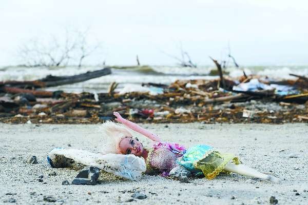 被遗留在海边的玩具娃娃