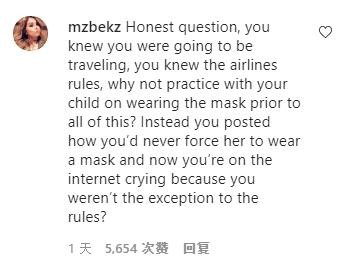“你知道将会旅行,也知道航司规定,为什么不提前教会女儿戴口罩?你不强迫她戴口罩,却在网上哭诉说自己没有‘特权’。”