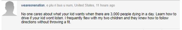 “没人关心你孩子想不想戴,现在每天三千多人死亡,孩子不听话需要大人引导,我经常带俩孩子旅行,他们都会遵从指示不会耍小脾气。”