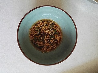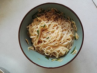 温馨小提示:面条爽滑、细腻,不能煮得时间过长,三分钟即可。虾皮和生抽都含有盐分,面条煮好后也稍有咸的口感,所以不用再加盐调味了。喜欢吃芝麻酱的,可以拌入芝麻酱。如果有辣椒油,那就更好啦。。。。。