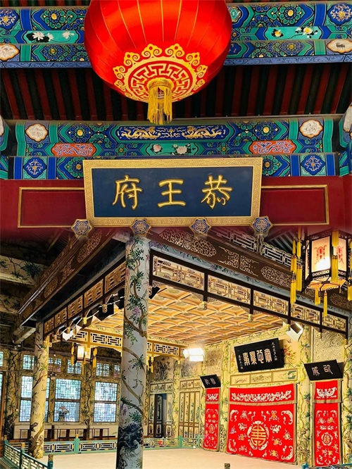 府邸区域严格按照清代王府规制构建,主体建筑包括大门、正殿、后殿及左右配殿,形成错落有致的多进四合院格局,彰显出王府的尊贵与庄严。而花园部分,即萃锦园,占地近2.8万平方米,巧妙融合了南北园林艺术之长,既有江南园林的婉约细腻,又不失北方园林的雄浑大气。其中,西洋门、御书“福”字碑、室内大戏楼被誉为恭王府“三绝”,各具特色,引人入胜。