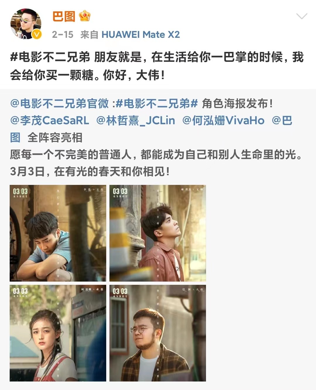 巴图19岁留学回来,在宋丹丹的影响下,参加了《老牛家的战争》《男人帮》《芈月传》等多部作品拍摄。今年2月份,由他主演的电影《不二兄弟》也上架。巴图和妻子是目前拥有3000多万粉丝的带货主播。