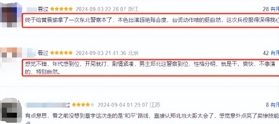 评论区内五星好评如潮,观众对作品质量及演员演技的认可溢于言表。