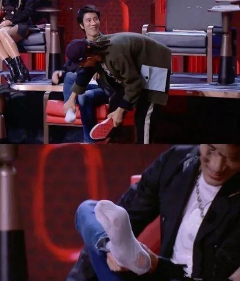 嘉宾池子现场要脱王力宏鞋子,那一刻他还在否认说“没有没有”,结果陶喆不依不饶一句“看脚底”揭穿了真相:袜子看得出是旧袜子,洞是真的洞而且还破了好大一个……王力宏讪笑地将鞋子扔向陶喆,不过满屏弹幕都是惊呆的网友:二哥是真的非常节俭了!!这洞比我奶奶袜子上的都大!