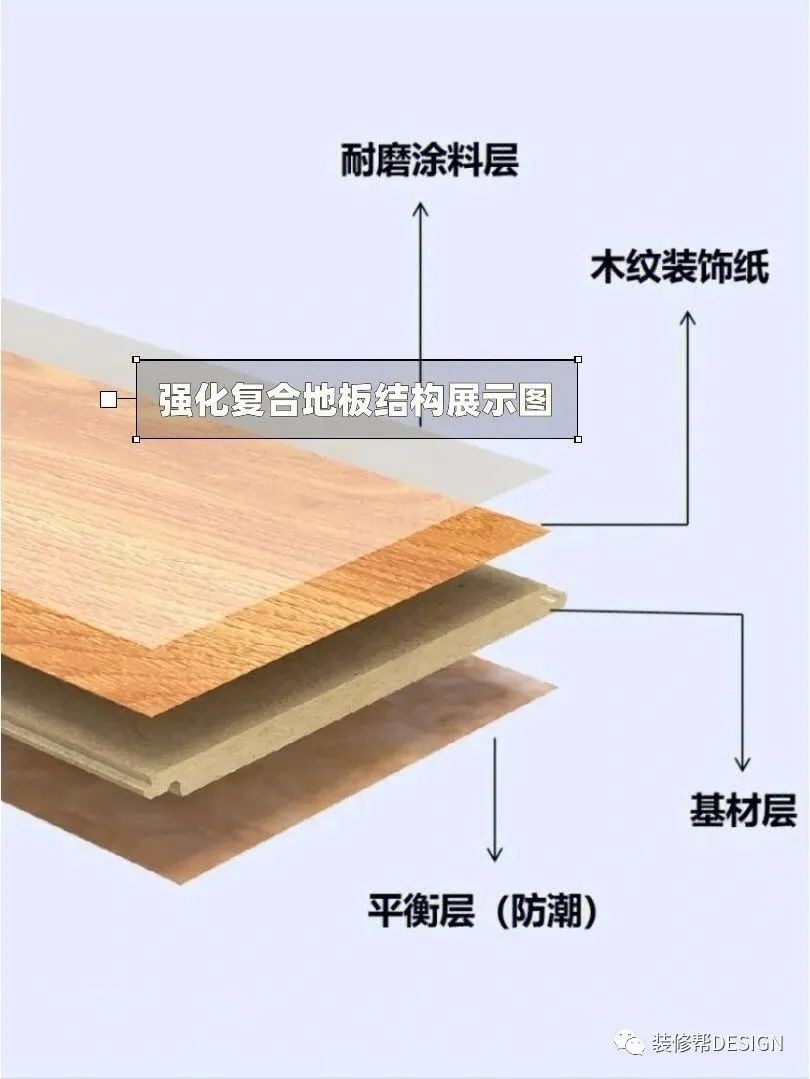 强化复合地板, 是指表面是耐磨层和装饰纸,中间是经热压成型的人造基材,底部是平衡防潮层的地板。