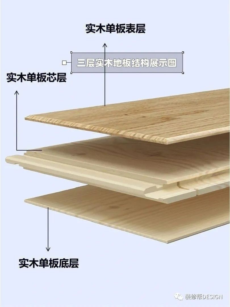 三层实木地板, 是以一层实木单板为表层,一层实木单板或拼板为芯层,一层实木单板为底层的三层结构实木复合地板
