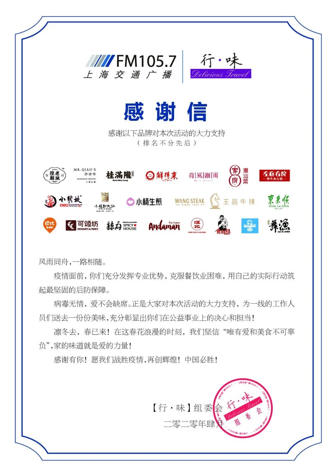 在最后我们要感谢为每位“守沪者”提供餐券和食物的品牌及餐厅。