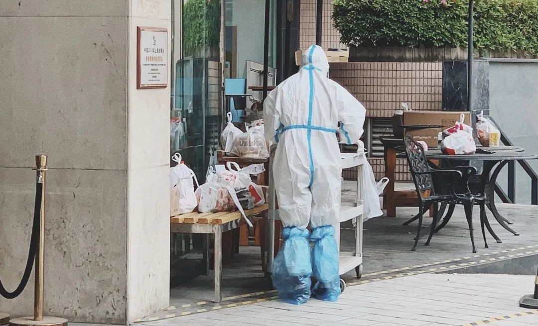 静安区专门为返沪留学生和外籍人士提供集中隔离点,静安公安对在隔离点岗位工作的医护人员及志愿者,在饭点,主持人原以为在外面拿着外卖的医护人员,是到了吃午饭的时候,询问之下才知道,那是替隔离人员拿外卖及快递。他们常常不能按时吃法,饿着肚子工作也是常态。