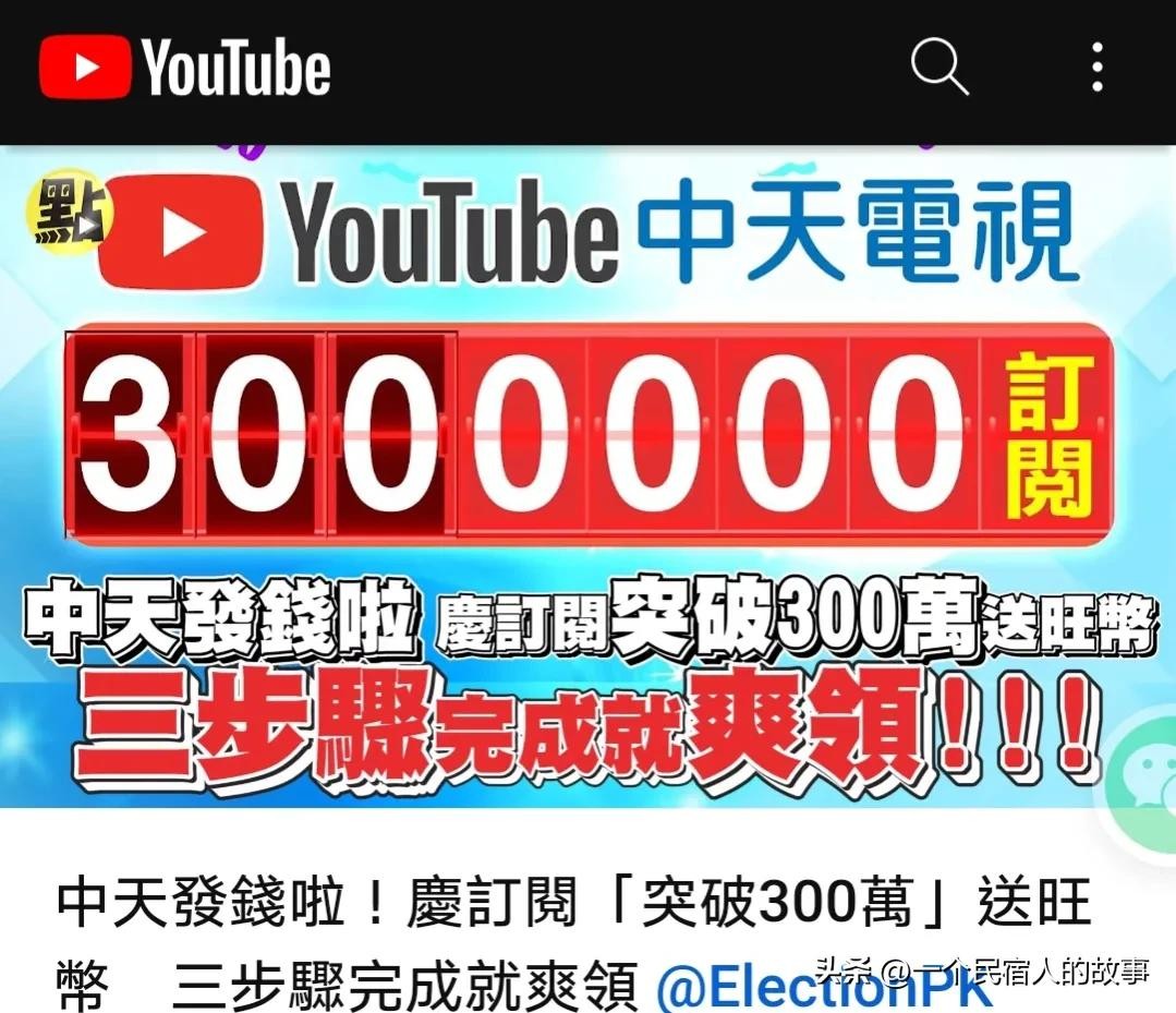 中天电视台youtube订阅破300万人