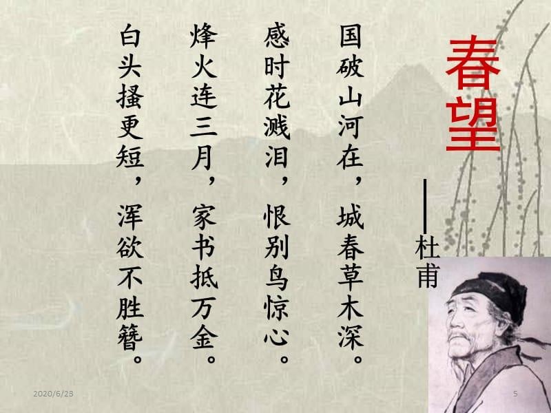 如《春望》中的“国破山河在,城春草木深”,深刻描绘了战乱后国家的残破,与人民的痛苦。