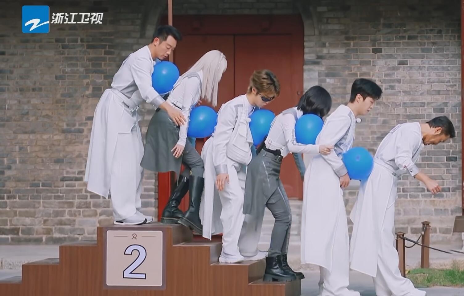 在一整个过程中,看着每个人因为保护气球而扭动身体做出奇奇怪怪的动作,真的是要把观众笑疯了。