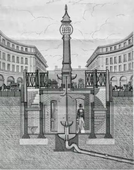 1851年,乔治·詹宁斯在首届伦敦世博会上展出了第一个抽水马桶样品,并在海德公园为公共厕所安上了抽水马桶,从而推动了抽水马桶的普及。他设计了一种虹吸管状的下冲式马桶,极大地加强了进入桶盆内的水压。较之先前的样式,奔流而下的水將桶盆洗刷得更为干净,这无疑是抽水马桶发明史上的革命性事件。