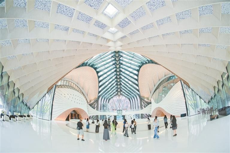 穿越“时间长廊”,抵达连接二期建筑的旋转过道。据介绍,二期是商业区,囊括艺术酒店、品牌文化馆、建筑博物馆、美术展览馆等。