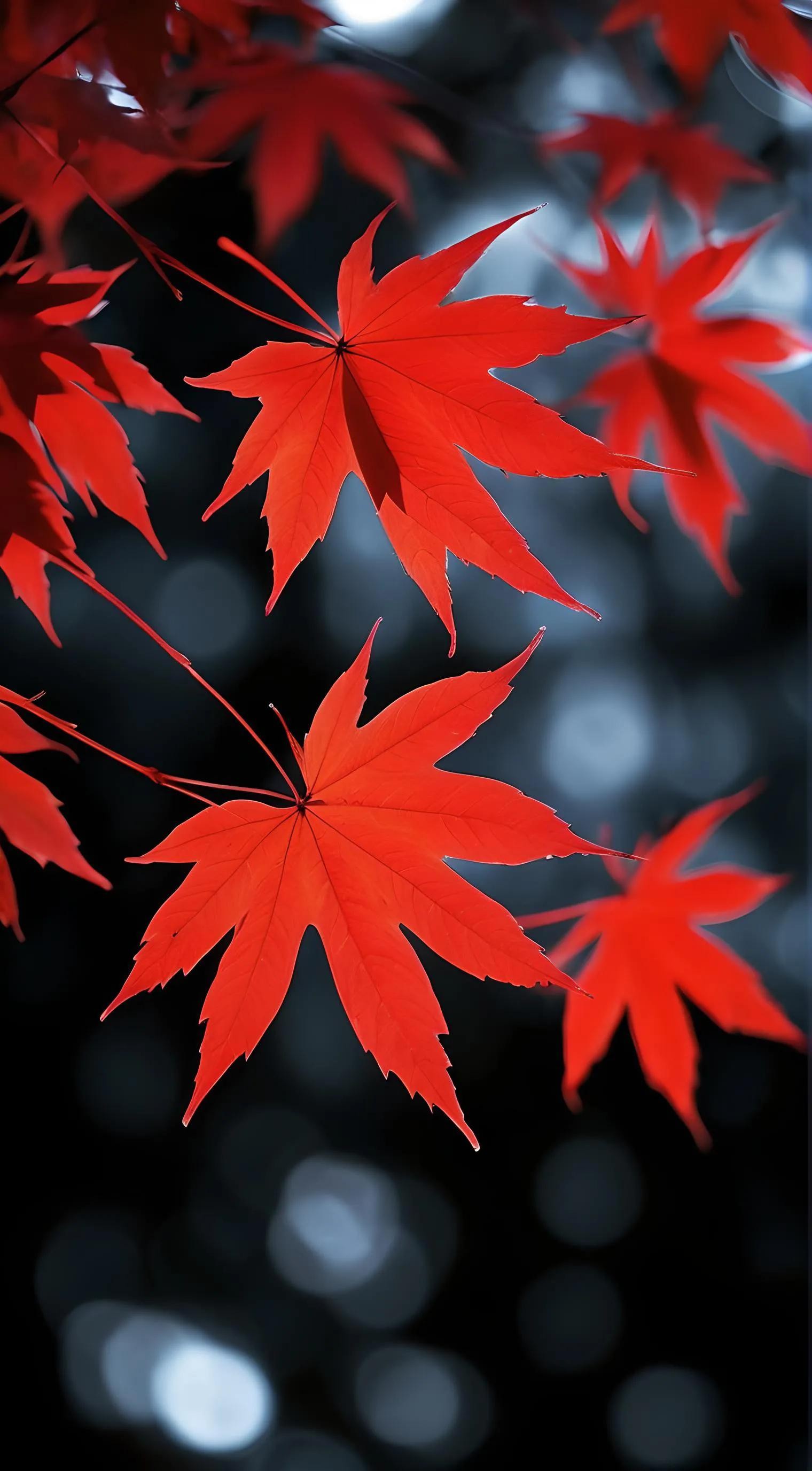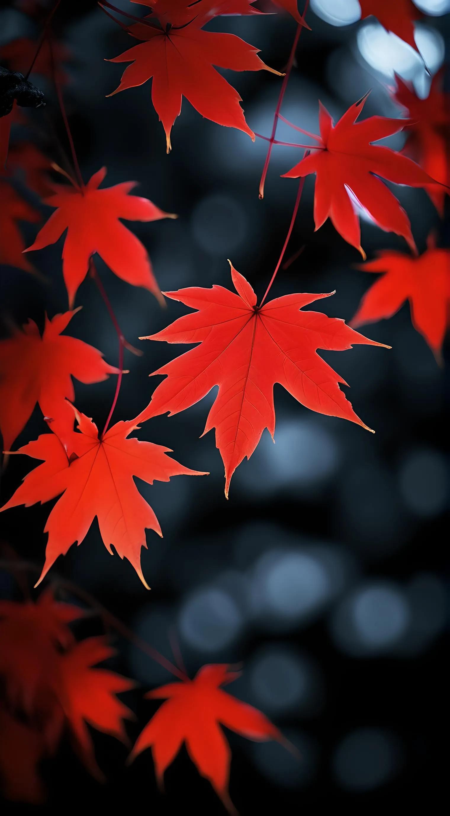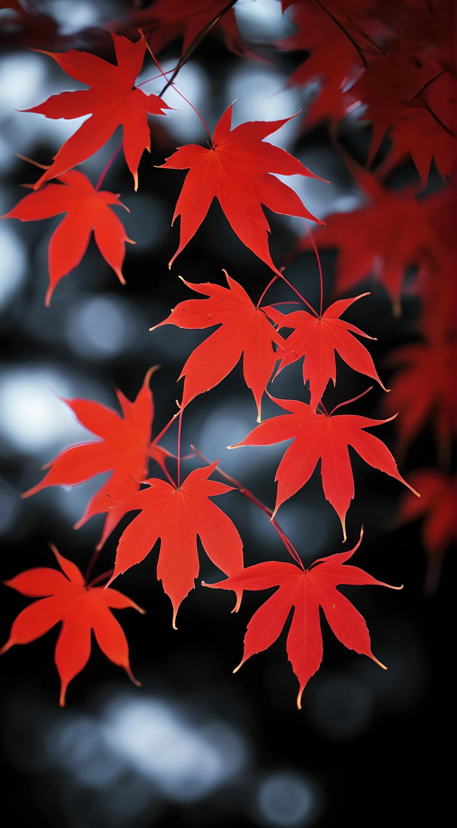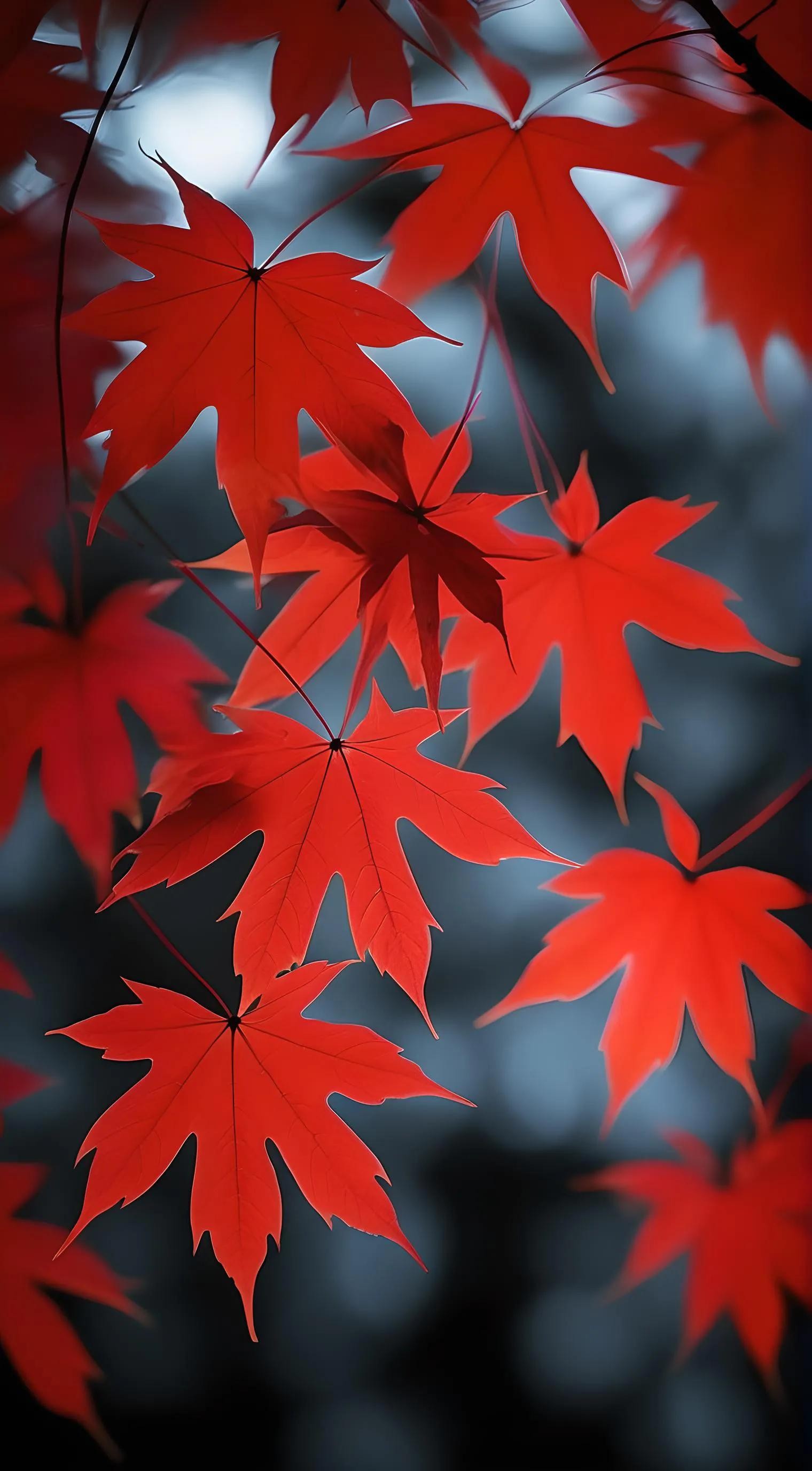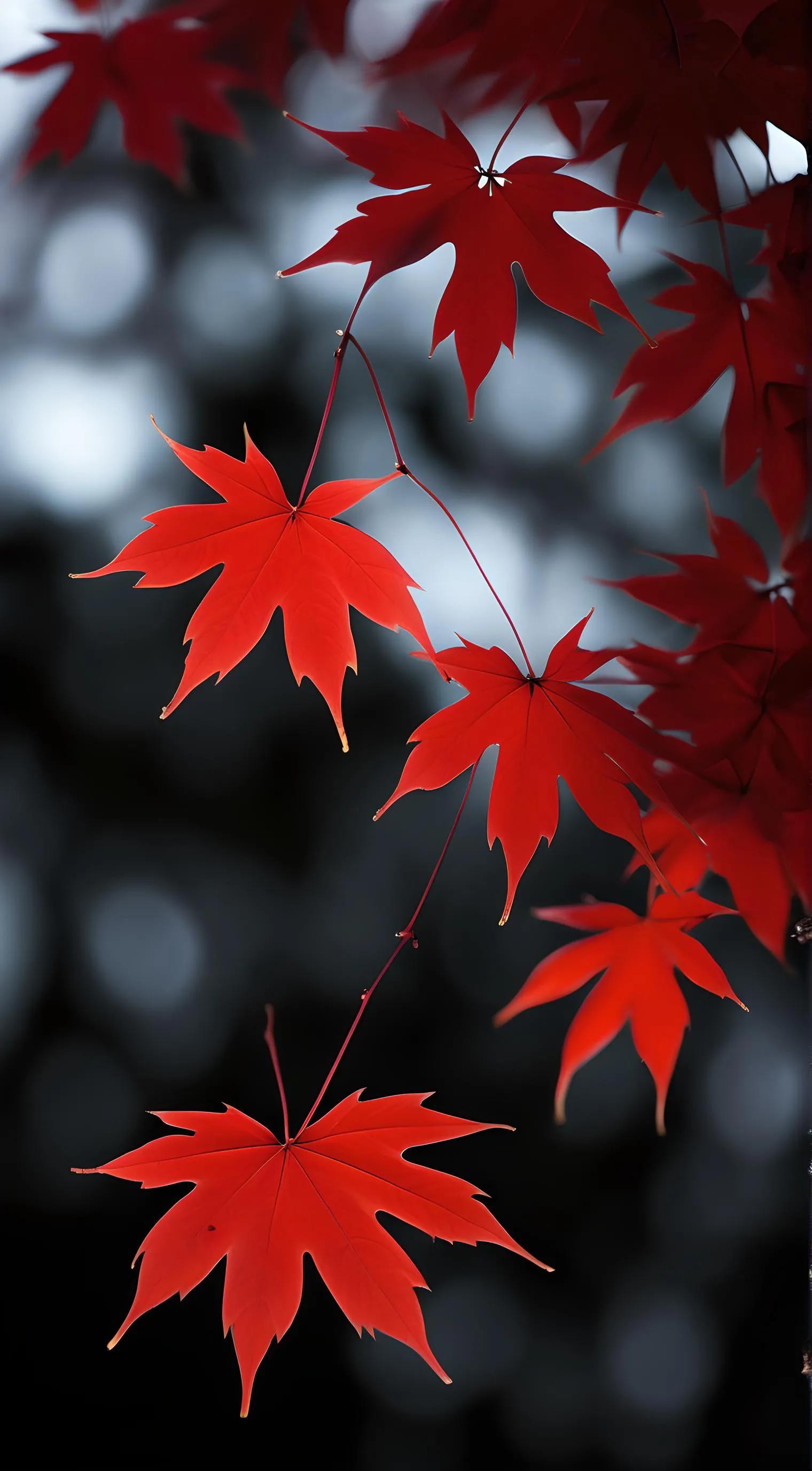 从构图与主题来说,图片中的枫叶以不同角度和方向悬挂于树枝,呈现出自然美感。这种构图让人感受到枫树的美丽与生命力,同时营造出宁静、祥和的氛围。秋天是枫树绽放美丽的季节,红色枫叶代表着秋天的到来和生命的交替。它不仅是一张精美的壁纸,更具象征意义,提醒我们珍惜生命中的每一个时刻,用心感受自然界的美好。总之,这张图片色彩鲜艳、构图美观且主题深刻,能给观赏者带来愉悦与思考,作为手机壁纸再合适不过。