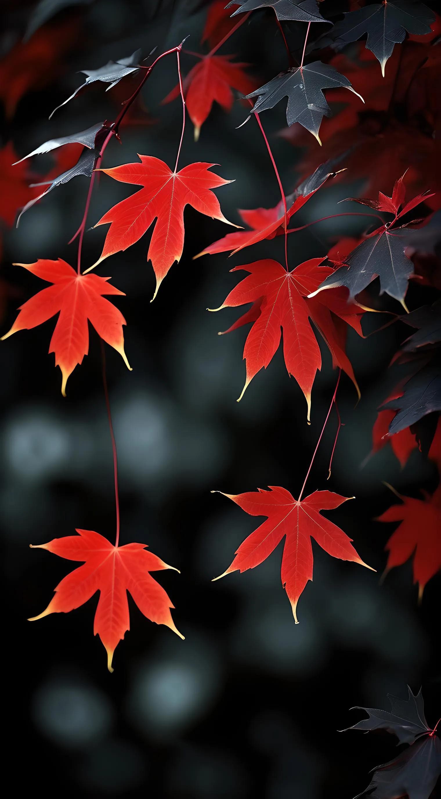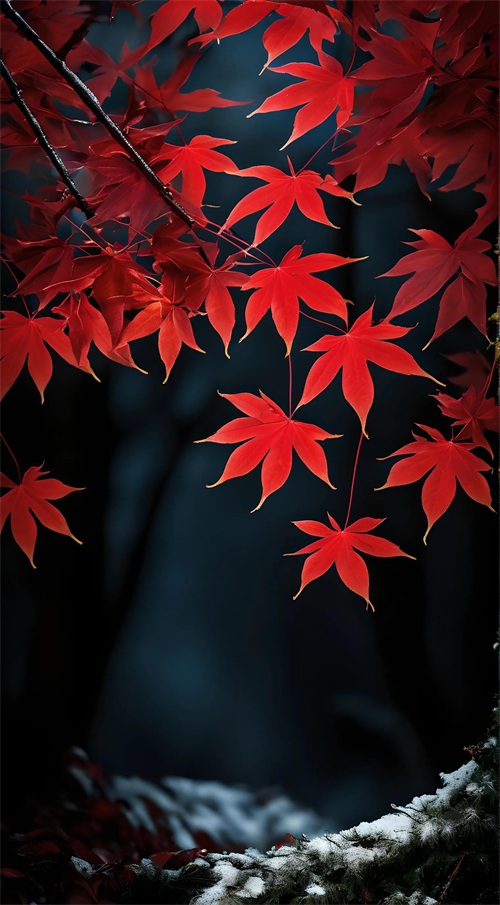 这张描绘秋天红叶枫树美丽景象的图片,十分适合作为手机壁纸。从颜色方面看,红叶枫树向来以鲜艳红色著称,此图将这一特点完美展现。红色枫叶在黑色背景衬托下,格外醒目,带来强烈的视觉冲击。那热烈的红色仿佛在诉说着秋天的故事,让人一眼便被吸引。