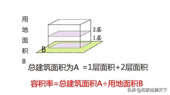建筑容积率简称容积率,又称建筑面积毛密度,宏观来说,是指项目规划建设用地范围内全部建筑面积与规划建设用地面积之比。附属建筑物也计算在内,但应注明不计算面积的附属建筑物除外。以上所提到的规划建设用地面积是指项目用地红线范围内的土地面积,一般包括建设区内的道路面积、绿地面积、建筑物 (构筑物)所占面积、运动场地等等。微观来说,是指建筑总楼板面积与建筑基地面积的比值,与建蔽率为不同概念。例如:在1万平方米的建筑基地上,建有单楼层5千平方米,共两层楼的建筑,则容积率为100%,建蔽率为50%。