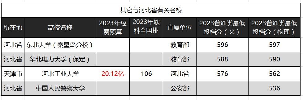 除了上面的10所大学外,河北还有一些校园在河北省却不归河北省主管、校园不在河北省缺归河北主管的大学,其中报考价值高的主要有4所,分别为东北大学(秦皇岛分校)、华北电力大学(保定)、河北工业大学、中国人民警察大学。