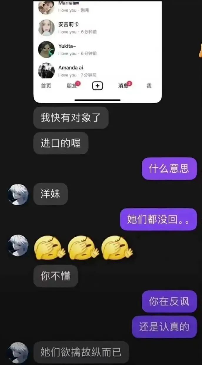 对方明明还没有回复,他却先炫耀上了,说自己即将拥有一位“进口的对象”。