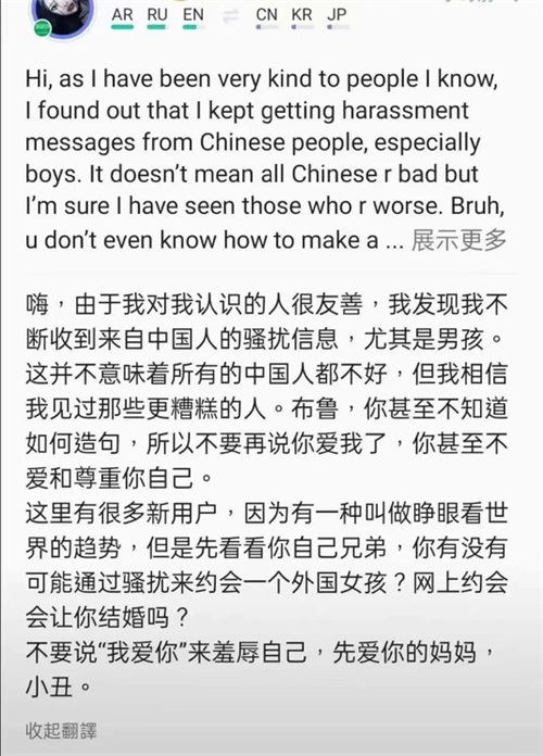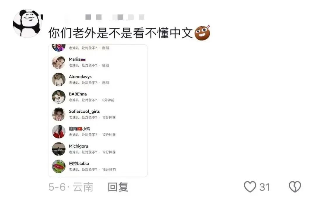 不乏有能看懂汉字的外国女生,在频繁收到私信骚扰后,她们也坐不住了。