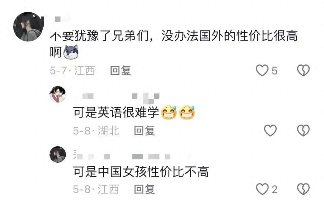 还说“中国男人到国外找对象跟喝水一样简单”...