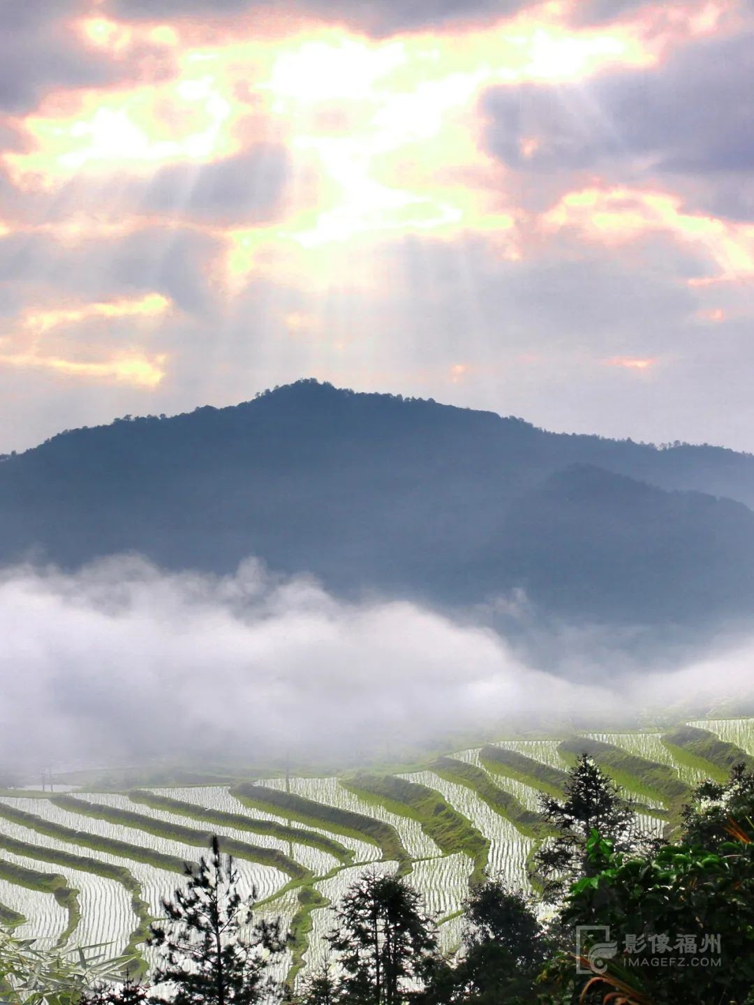 (永泰县同安镇丹洋黄昏稻田,摄影师@黄文浩)