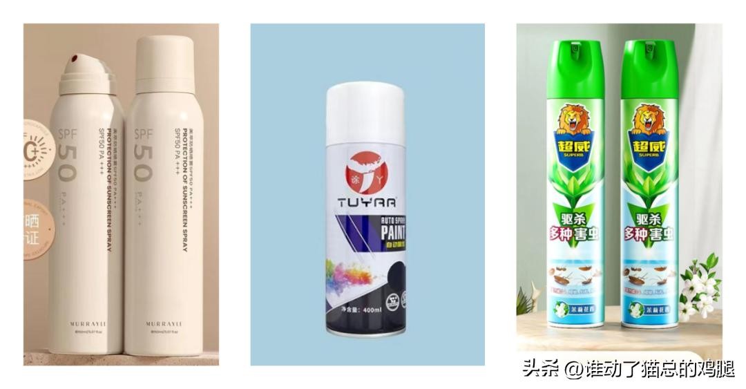 日常生活中的常见产品:防晒喷雾、自喷漆、杀虫剂。