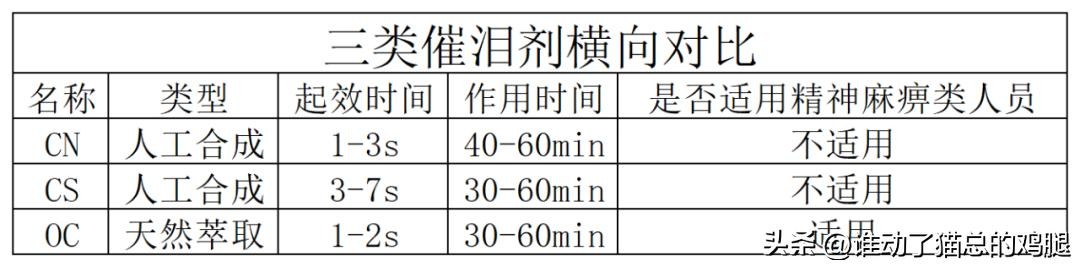 三种催泪剂的区别对比