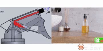 左侧为喷雾泵工作原理,右侧为油泵工作原理,两者本质原理相同