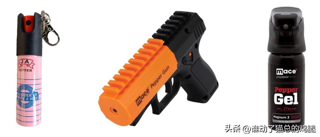 从左到右依次为钥匙扣款喷雾、枪型喷雾、进口喷雾(梅西)