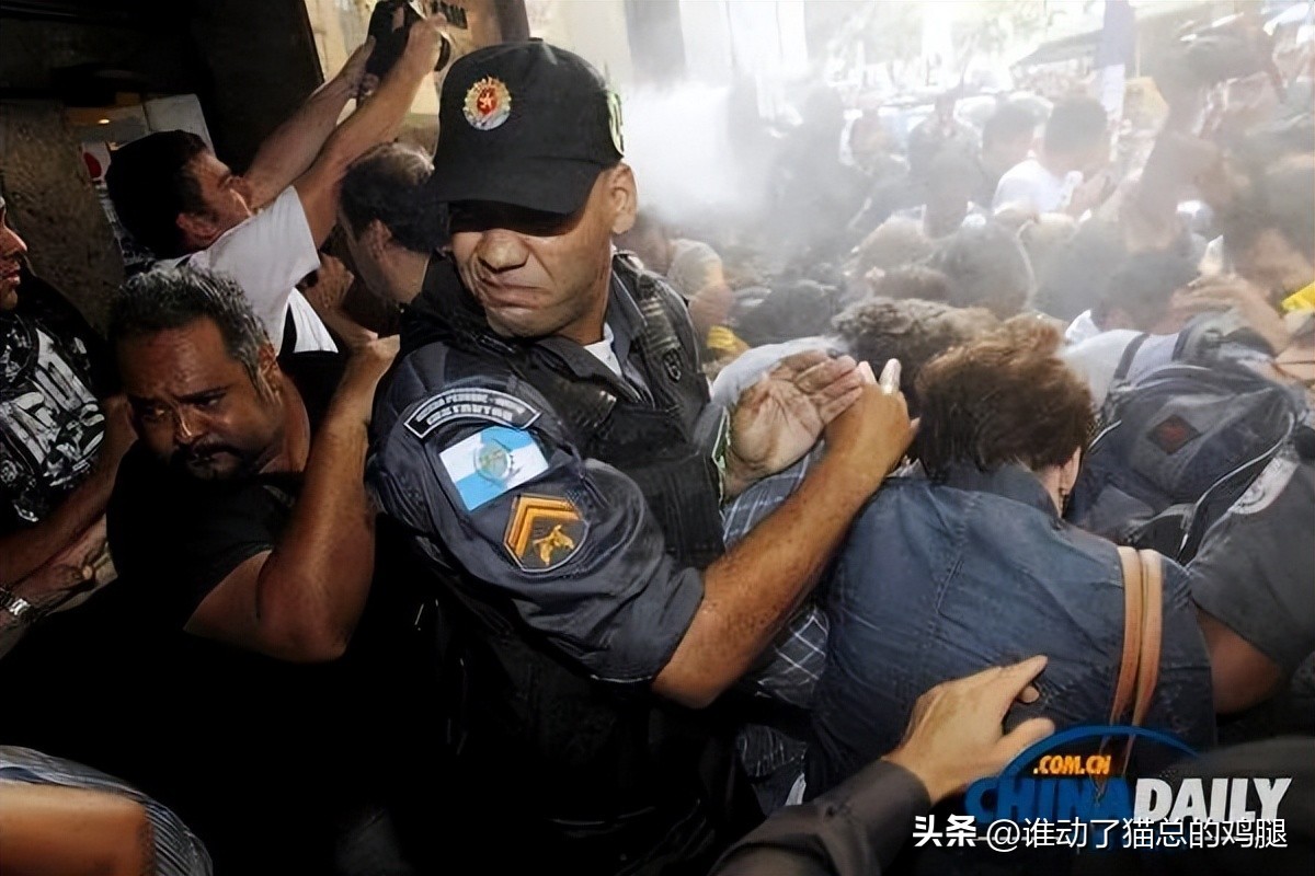 巴西抗议游行,警方使用辣椒喷雾压制人群