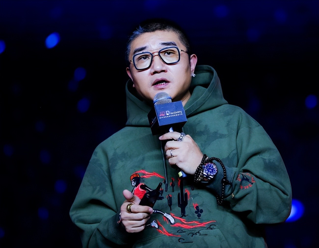 对外的照片中,耳朵上戴着耳钉,手腕上戴着串儿,食指上还带着夸张的大戒指。表面上不着调,但却是十分靠谱的人。