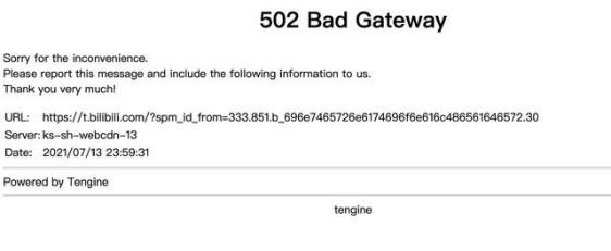 7月13日晚间,B站出现访问故障。除了网站和移动端显示加载错误之外,B站出品的轻视频、剪辑软件必剪等均无法打开,显示页面加载出错。故障持续超过一小时。