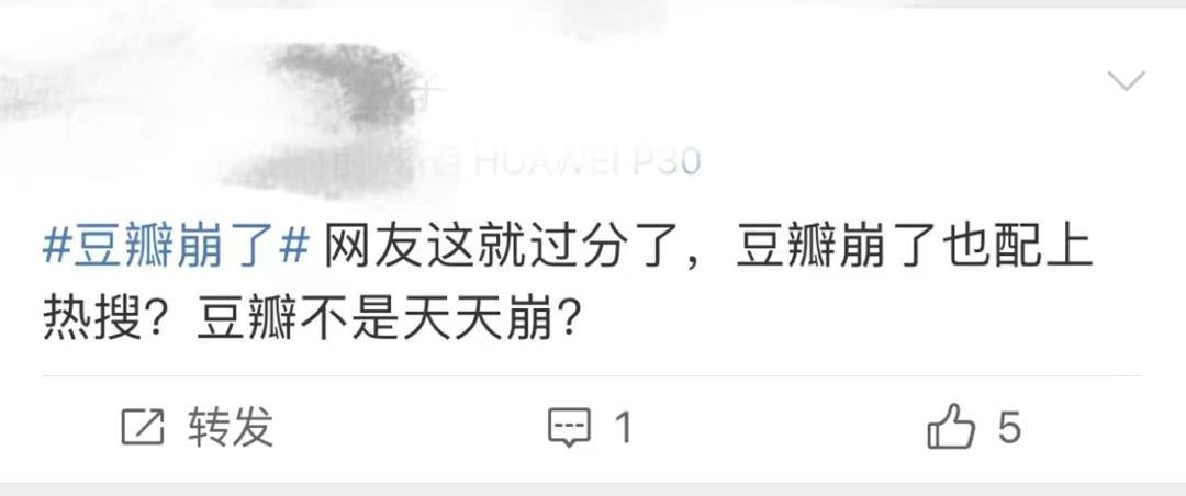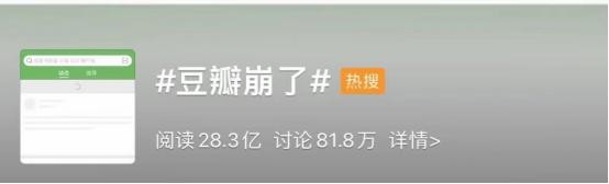 更不用说每月一崩的微博热搜包年话题#豆瓣崩了#,阅读量累计已经突破28亿。平均每个中国人都受过2次豆瓣崩了的苦。
